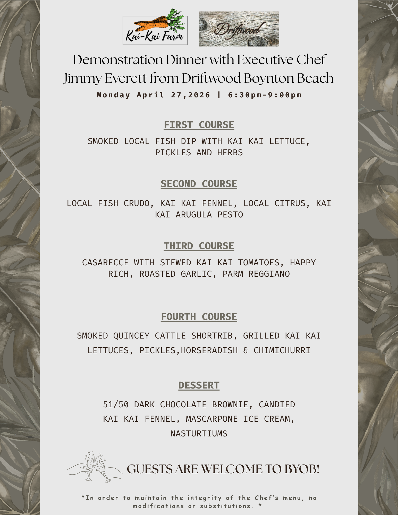 Demonstration Dinner with Executive Chef Jimmy Everett from Driftwood Boynton Beach
