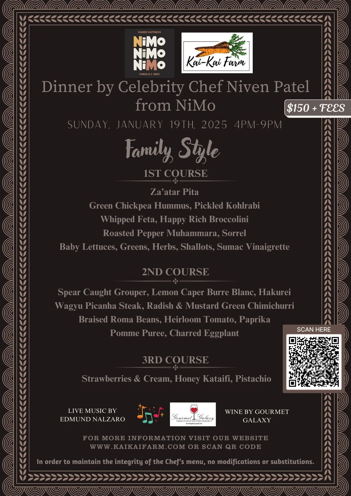 Farm tour 4:00pm | Hors D’oeuvres 5:00pm | Dinner 6pm